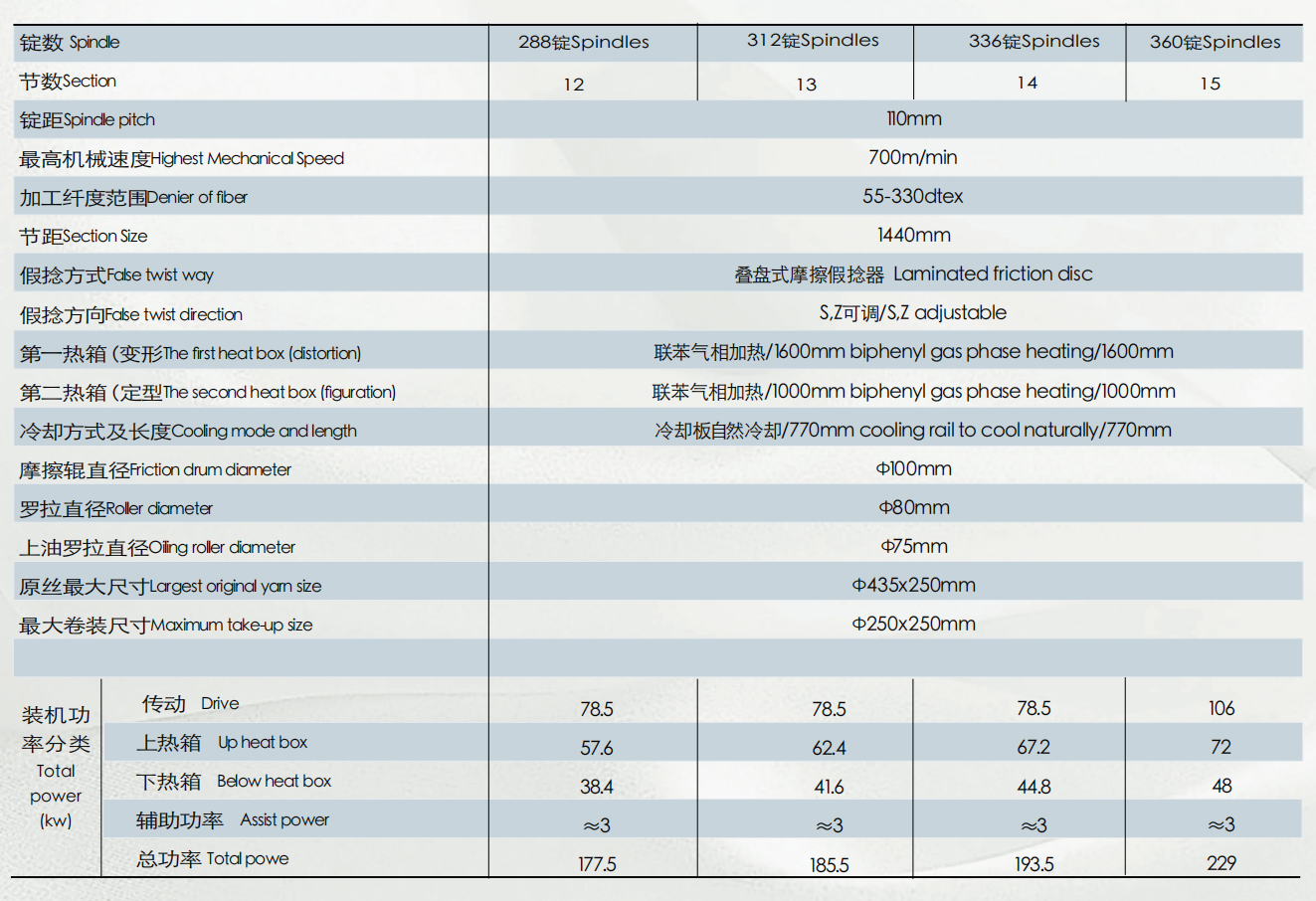 【設(shè)備用途Equipment use】 該機(jī)主要是將POY原絲(聚酯預(yù)取向絲),通過拉伸和假捻變形加工成具有低彈性能的假捻變形絲(DTY滌綸彈力絲),若在設(shè)備上選擇增加網(wǎng)絡(luò)部件還可以進(jìn)行網(wǎng)絡(luò)絲的加工。...