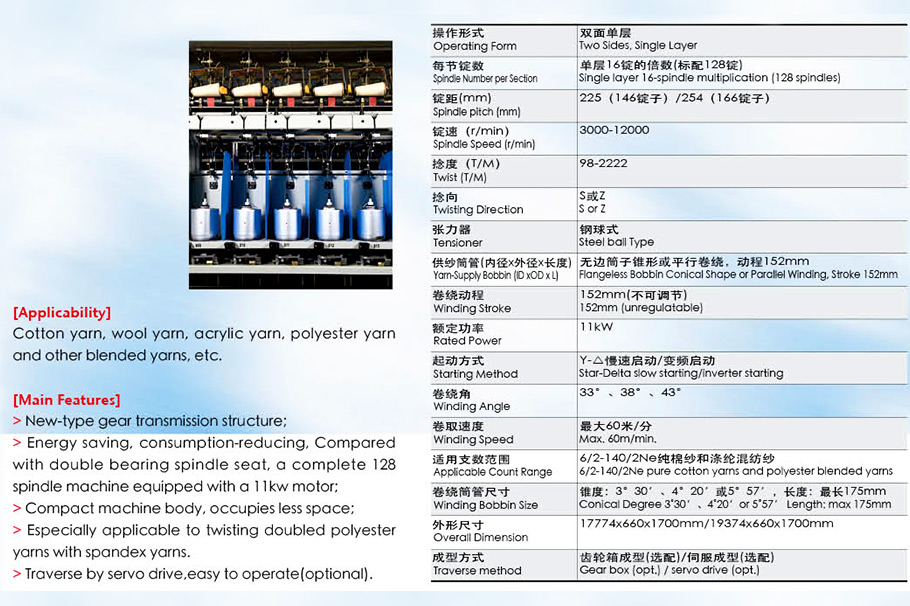 4.特別適合雙滌絲和氨綸絲合股加捻。